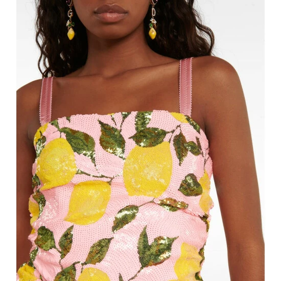Designed exclusively for Mytheresa, this shimmering dress from Dolce&Gabbana captures summer glamour. The mini-length design is doused in a lemon motif that nods to the label’s Sicilian roots.