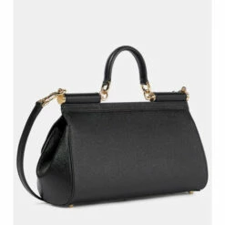Dolce & Gabbana expands its Sicily bag family with this Medium crossbody iteration. Made from grained black leather, it has a baguette silhouette, a detachable shoulder strap and gleaming golden hardware.