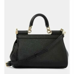 Dolce & Gabbana expands its Sicily bag family with this Mini crossbody iteration. Made from textured black leather, it has a baguette silhouette, a detachable shoulder strap and gleaming hardware.