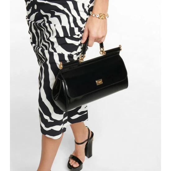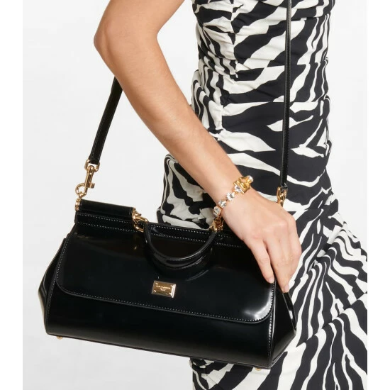 Radiate poise with the Sicily shoulder bag from Dolce&Gabbana. It’s executed in calfskin leather with a glossy varnish finish, and features subtle gold accents.