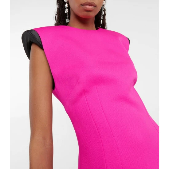This sleeveless minidress from Dolce&Gabbana forms a striking silhouette with its padded shoulders and cinched waist. Made from virgin wool in Italy, this style has a back zipper and hook-and-eye fastening.