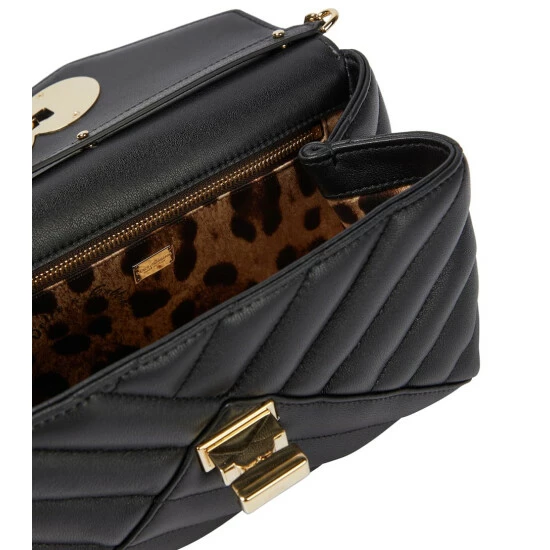 This Small shoulder bag from Dolce&Gabbana is made from quilted black leather. It features a leopard-print interior with golden hardware and a glamorous chain shoulder strap.