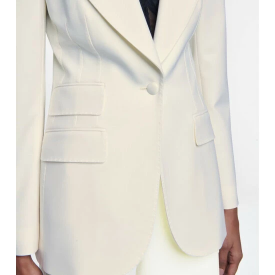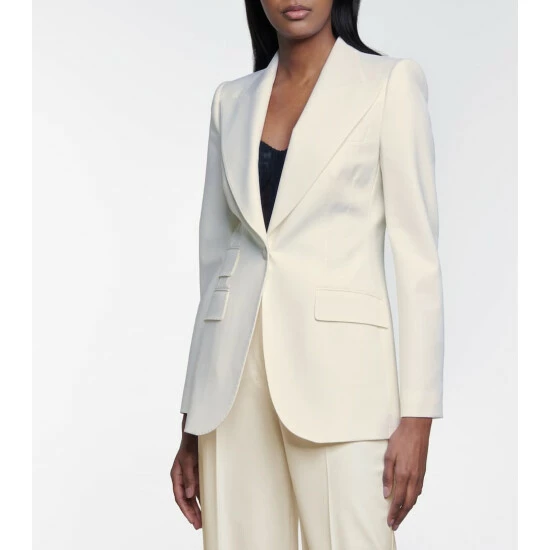 Get yours angles right with this precisely tailored white blazer from Dolce & Gabbana. This single-breasted design is made from natté – a lightly textured, stretch-fused wool blend – that’s darted for a slender, sculpting fit and exaggerated with padded shoulders. We love the asymmetric pockets, which provide a unique touch, and the silk lining that allows for easy, crease-free layering.