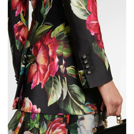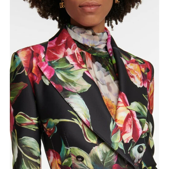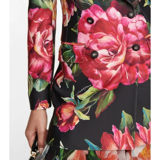 Dolce&Gabbana showcases its tailoring expertise with the Turlington blazer. Made from a technical fabric with a charming rose print, the double-breasted style has peak lapels, flap pockets, and logo-emblazoned buttons.