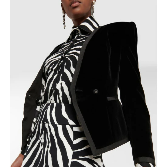 Polish office and evening looks with this jacket from Dolce&Gabbana. Made from velvet, it has DG-embossed buttons, grosgrain trims, and a zebra-print lining.