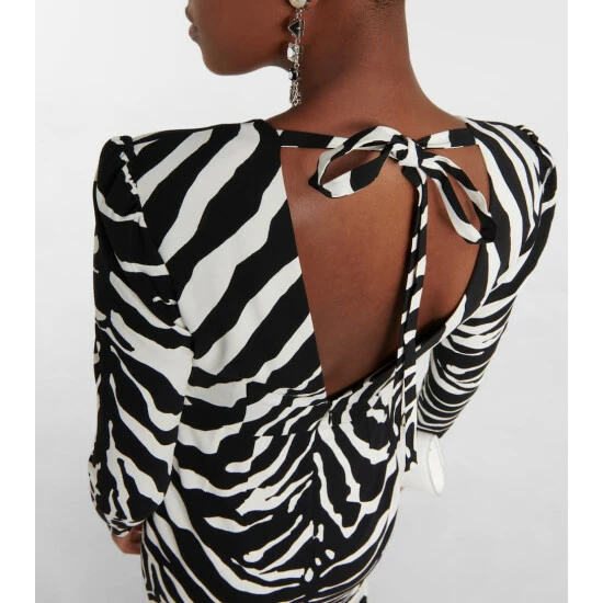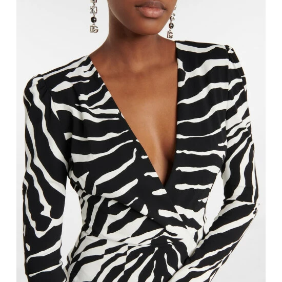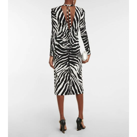 This midi dress from Dolce&Gabbana features an open back with string-tie details and a wrap front. Made from cady in a bold zebra print, it has gathered shoulders and a fitted waist.