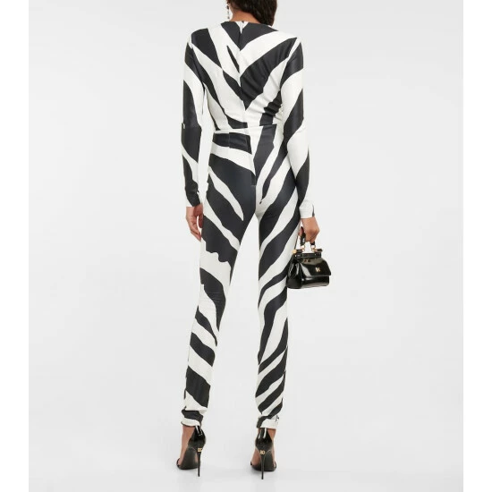 Embrace contrast with this zebra-printed jumpsuit from Dolce&Gabbana. Made in Italy from jersey, it has a figure hugging silhouette with with zipped ankle cuffs.