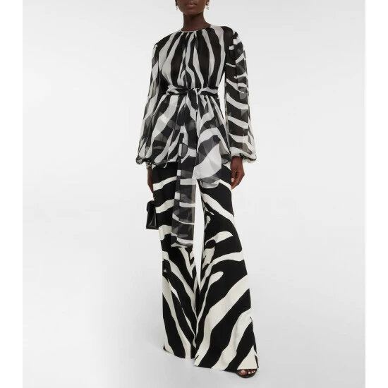 Make a bold statement in these zebra-print pants from Dolce&Gabbana. The eye-catching style has a high-rise waist and is cut to a glamorous wide-leg silhouette.